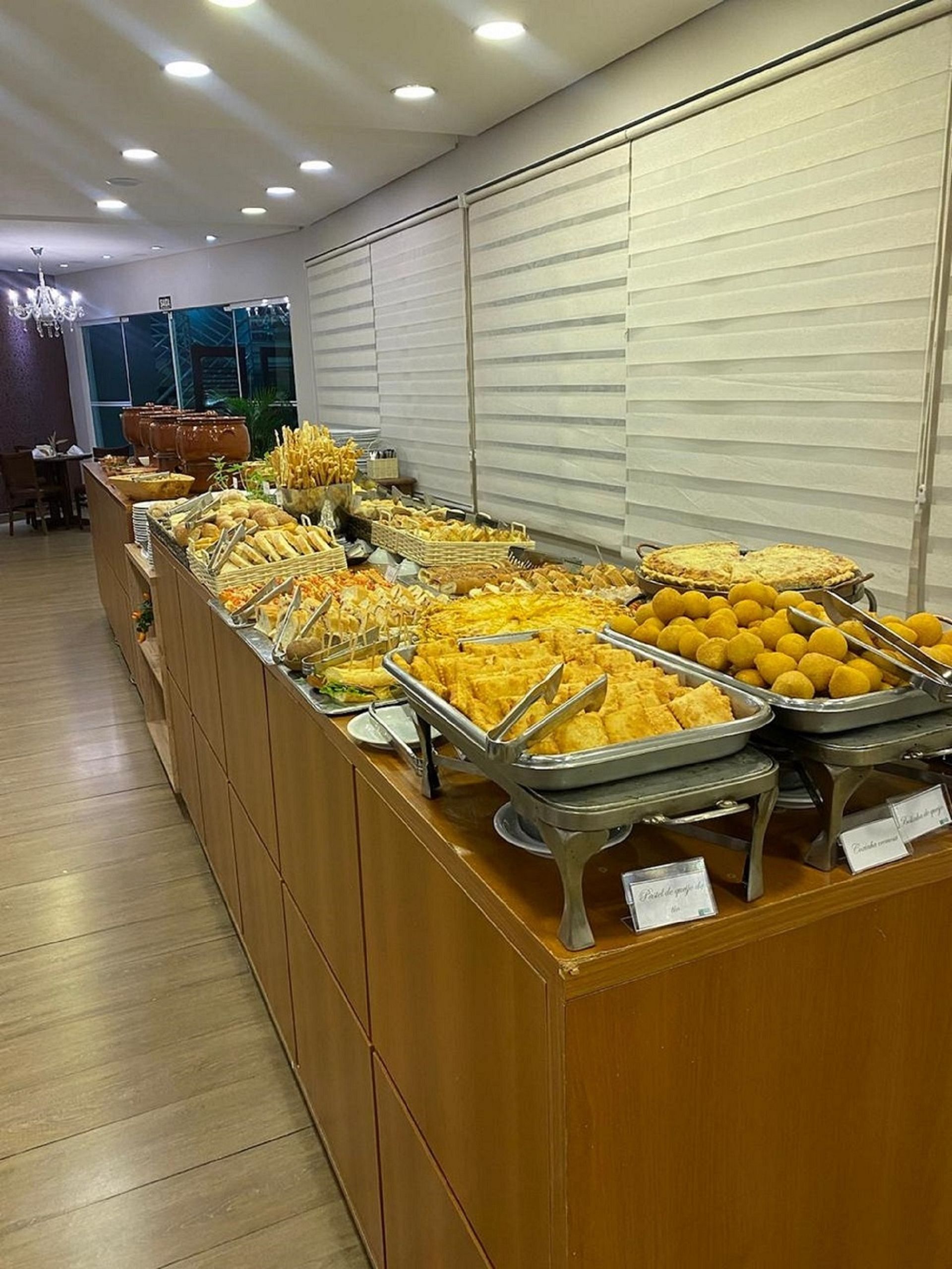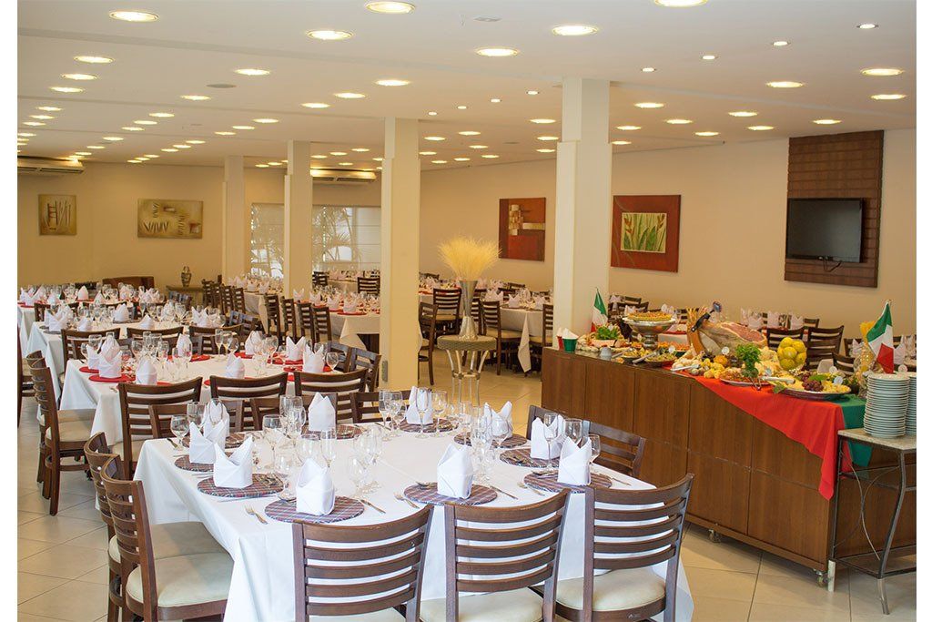 O espaço é amplo e comporta em torno de 200 pessoas. O hotel oferece amplo estacionamento sem custo.