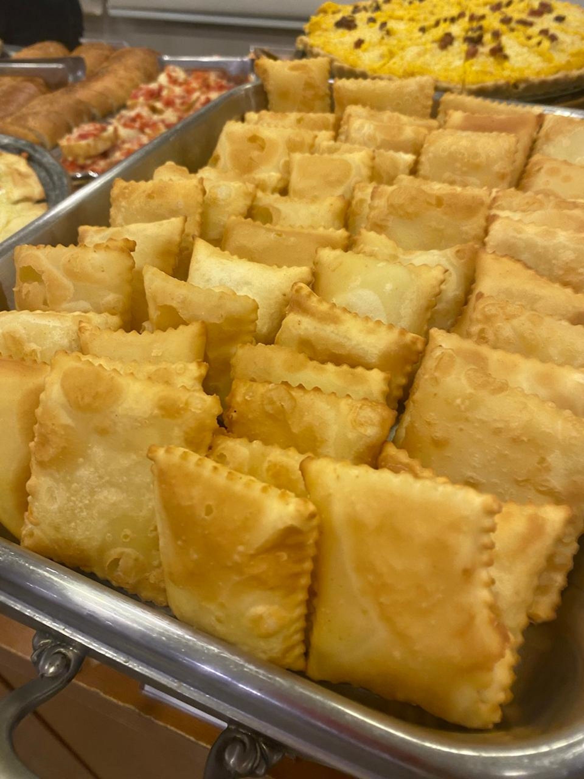 Tortas e salgados: quiches, salgados fritos e pizza.
